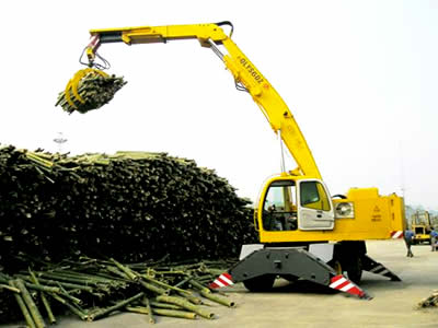 QLYS-DZ系列液壓輪胎式抓料機(jī)是一種流動(dòng)式裝卸、堆垛和拆垛專用設(shè)備,含有多項(xiàng)專利技術(shù)。該產(chǎn)品采用折疊式吊臂,克服了汽車起重機(jī)軟索起重時(shí)抓斗易打轉(zhuǎn)和作業(yè)時(shí)無下壓力,而對(duì)較積實(shí)的物料抓取效果差等不足。是對(duì)草葦、木材、毛竹、廢紙、土、砂、石等泡松散軟原料進(jìn)行裝卸、堆垛和拆垛作業(yè)的最佳設(shè)備。